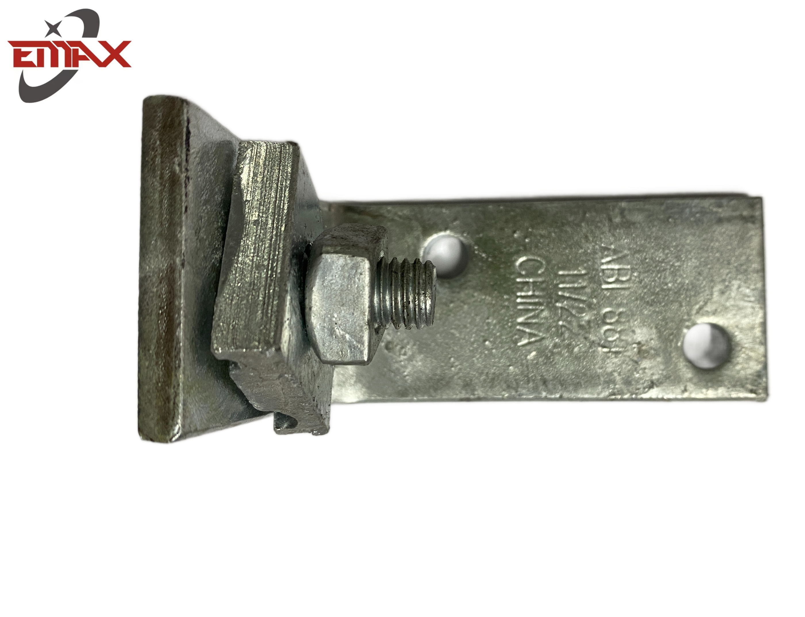 Cada soporte se suministra con un perno de riel de 1/2' x 1-5/8', una tuerca cuadrada de 1/2' y una placa de sujeción con ranura doble.